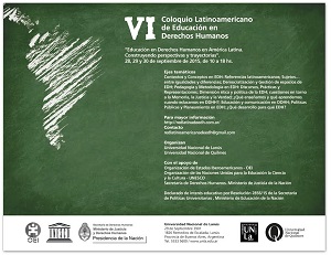 El VI Coloquio Latinoamericano de Educación en Derechos Humanos se llevará a cabo del 28 al 30 de Septiembre de 2015 en la Universidad Nacional de Lanús.